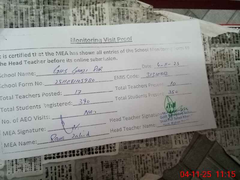 | EMIS Code: 31310012 | Name of School: GHS GHAZI PUR | |||