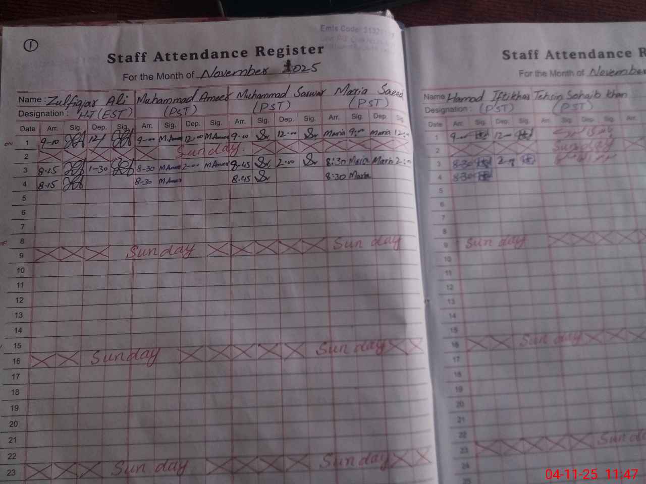 | Name: ZU**** AL**** Designation: (School Headmaster's/Headmistress's) EST (GEN) Phone/Cell Number: 03**** |