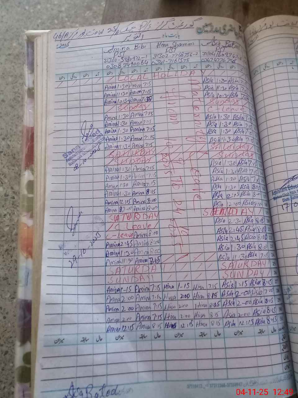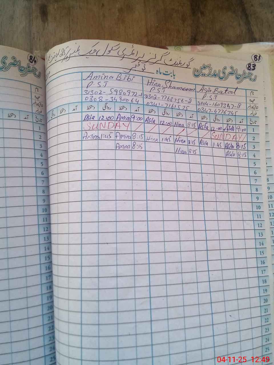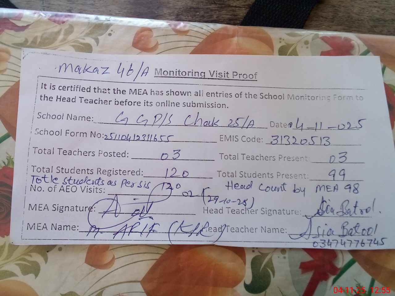 | Name: AS**** BA**** Designation: (School Headmaster's/Headmistress's) PST Phone/Cell Number: 03**** |