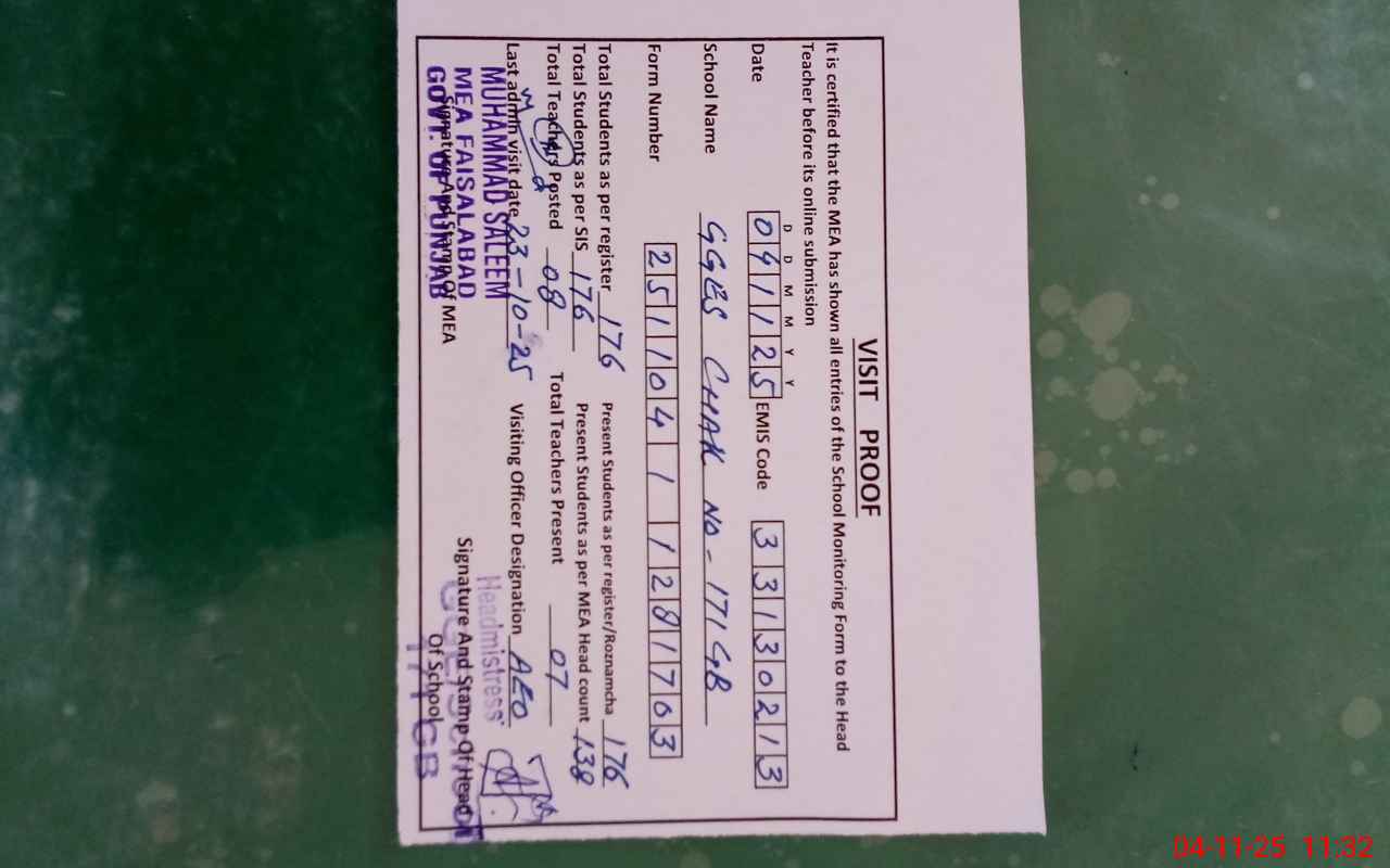 | EMIS Code: 33130213 | Name of School: GGES CHAK 171 GB SAMUNDRI | |||