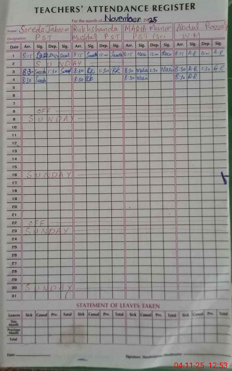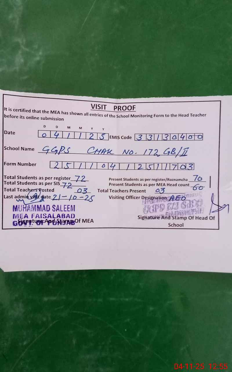 | Attendance Register | Head Teacher | MEA with School | Visit Proof |