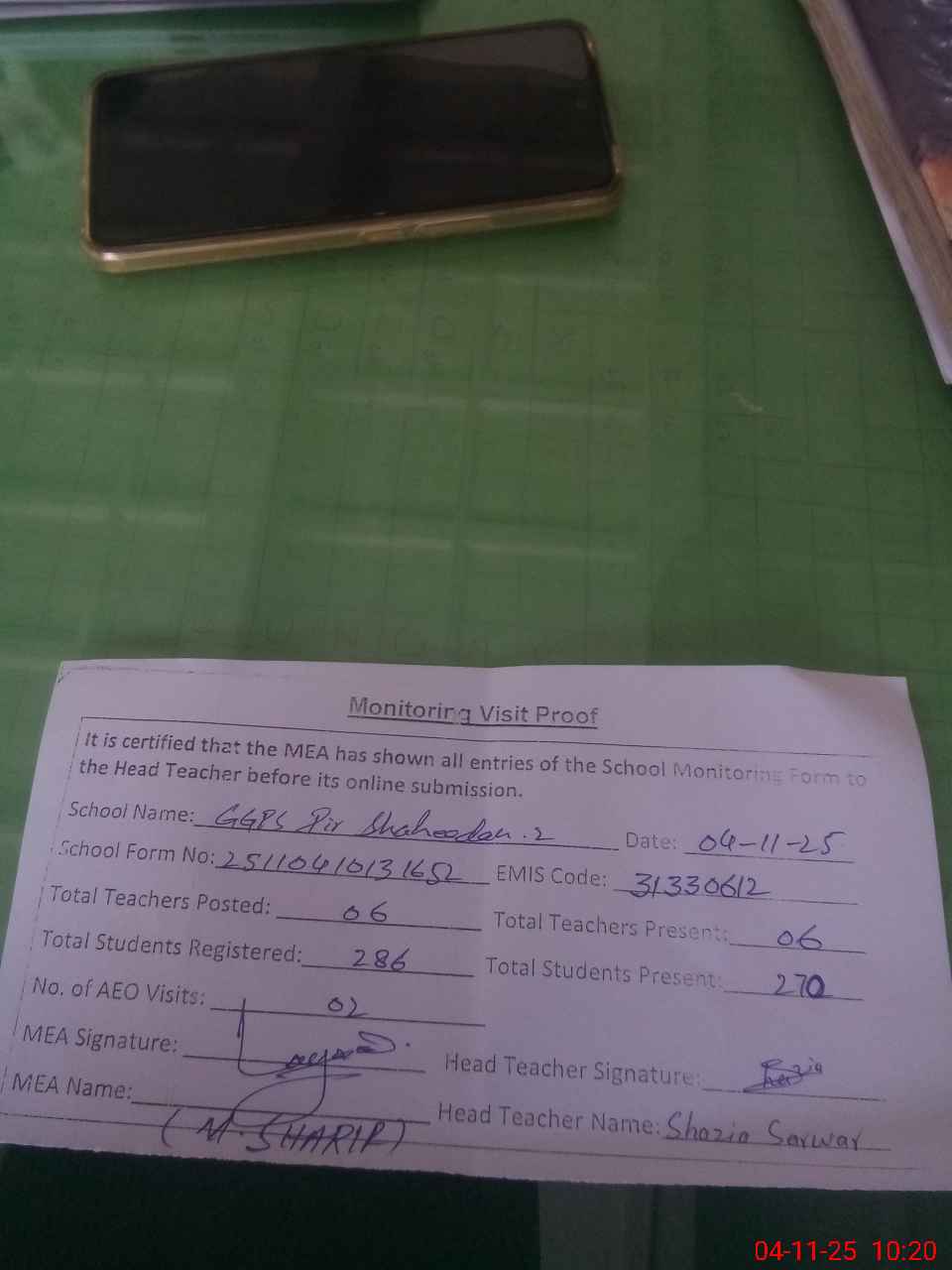 | EMIS Code: 31330612 | Name of School: GGPS PIR SHAHIDAN NO.2 | |||