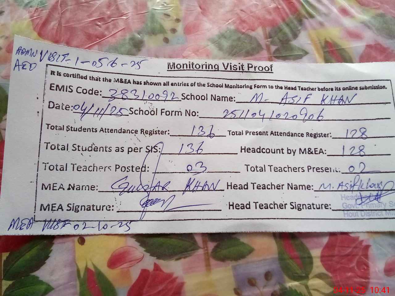 | Name: MU**** AS**** Kh**** Designation: (School Headmaster's/Headmistress's) Pst Phone/Cell Number: 03**** |