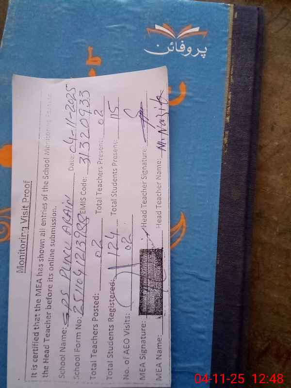| Attendance Register | Head Teacher | MEA with School | Visit Proof |