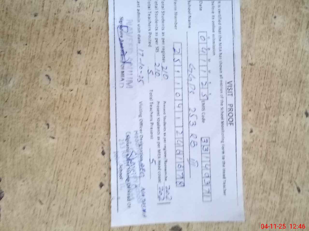 | Attendance Register | Head Teacher | MEA with School | Visit Proof |