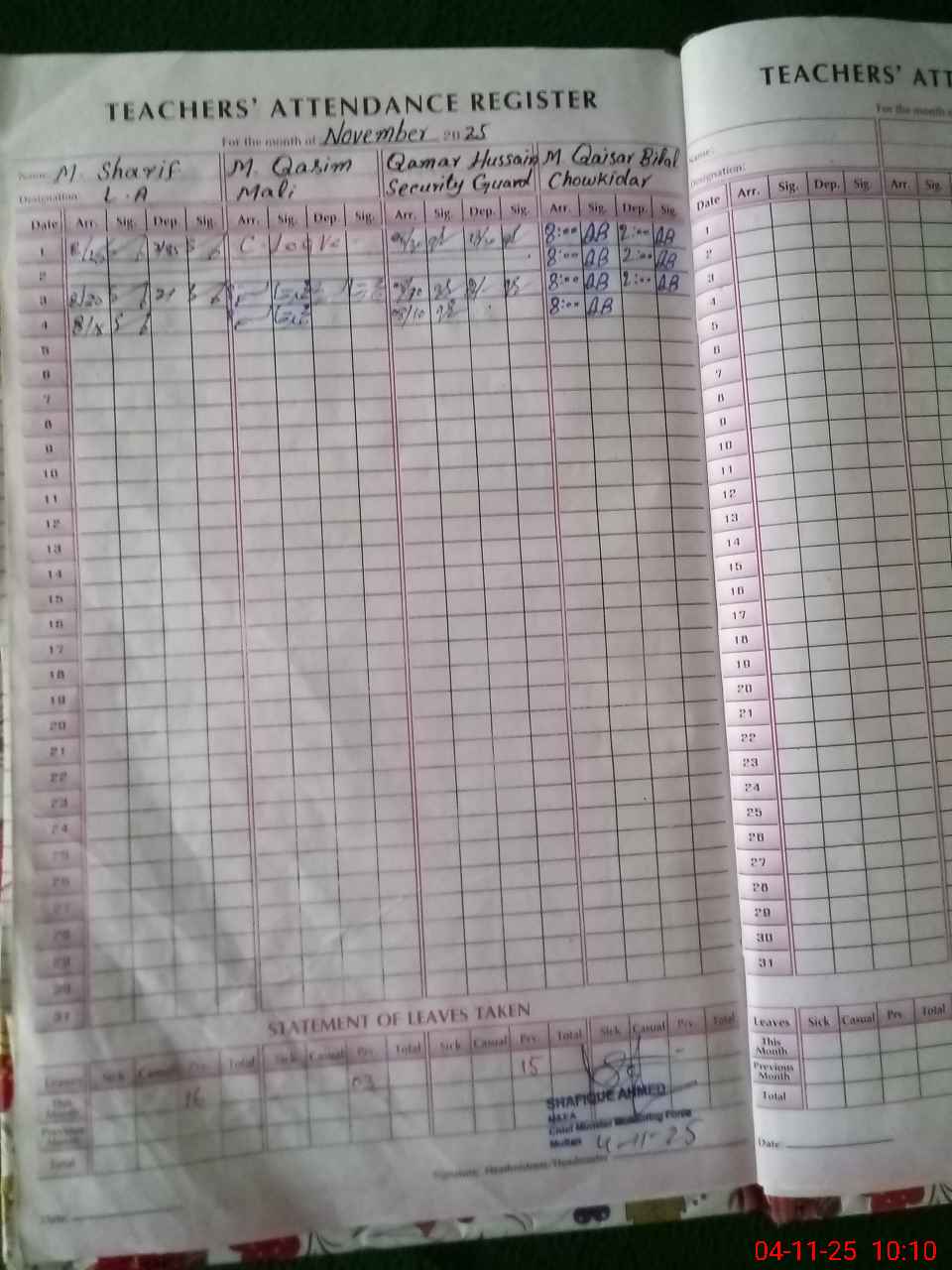 | Name: NO**** AH**** Designation: (School Headmaster's/Headmistress's) INCHARGE HEAD MASTER Phone/Cell Number: 03**** |