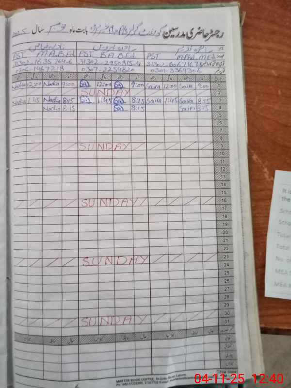 | Name: Sa**** Na**** Designation: (School Headmaster's/Headmistress's) PST/PTC/JV Phone/Cell Number: 03**** |