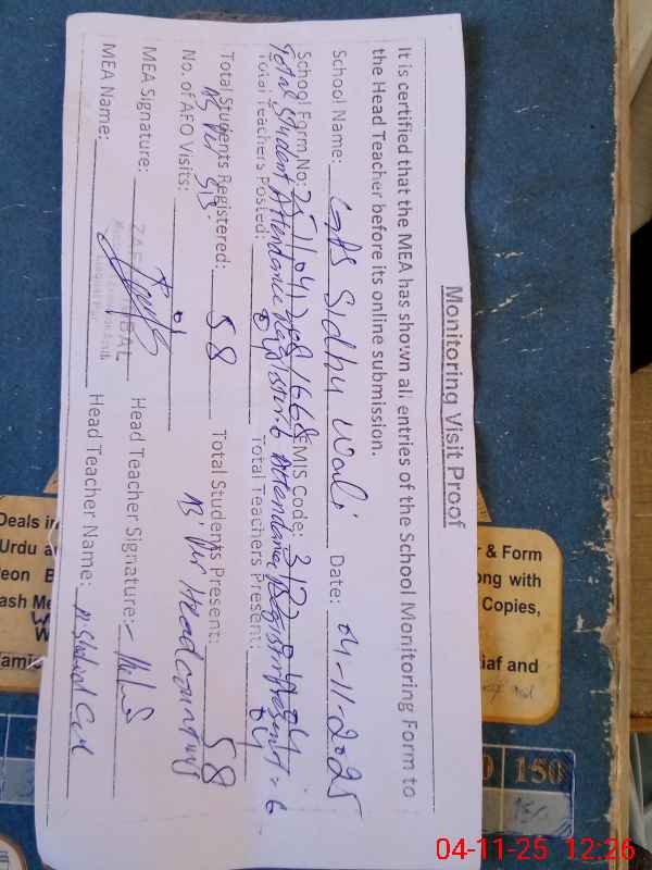 | EMIS Code: 31320404 | Name of School: GPS SIDHU WALI | |||