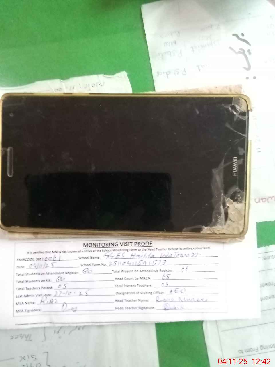 | Attendance Register | Head Teacher | MEA with School | Visit Proof |