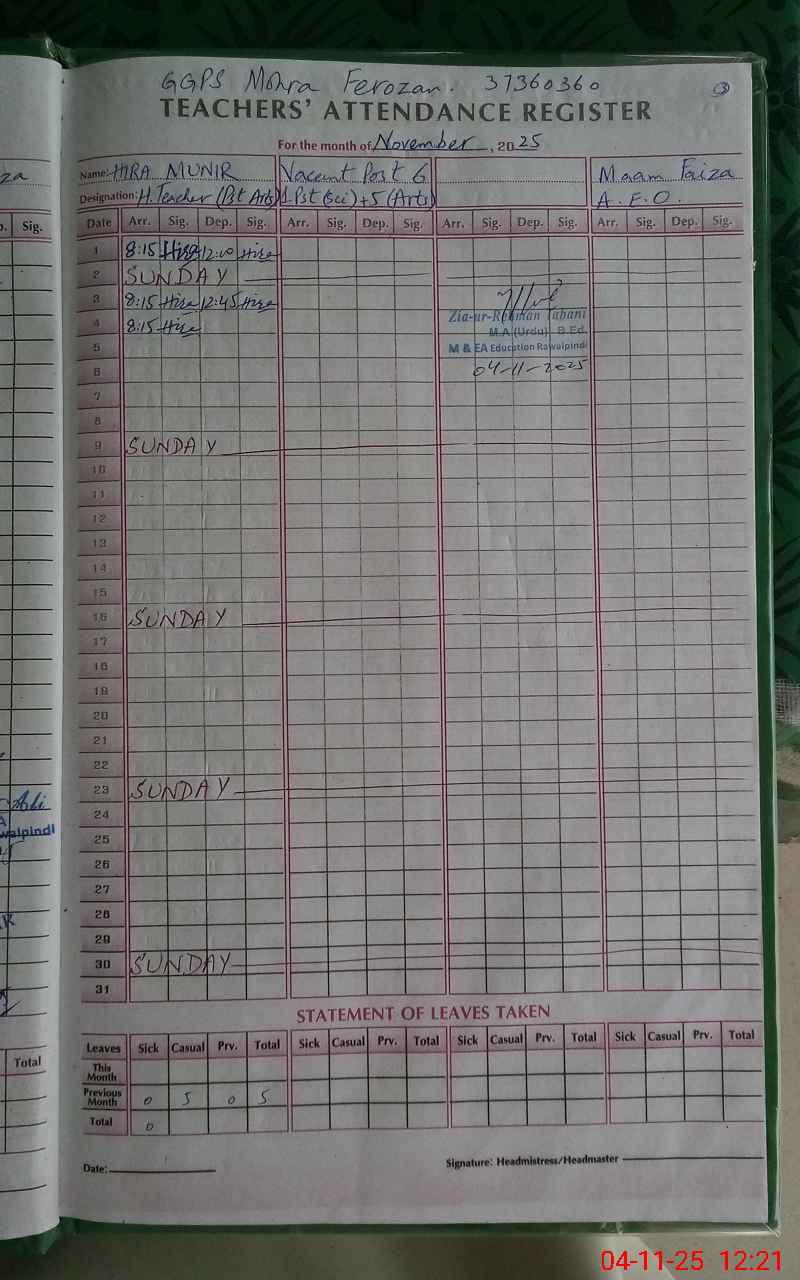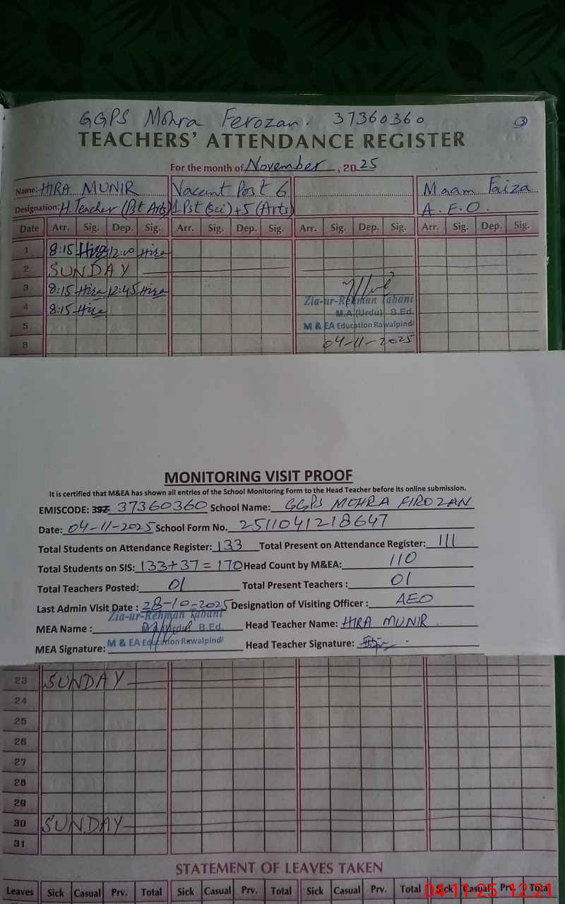| EMIS Code: 37360360 | Name of School: GGPS MOHRA FIROZAN | |||
