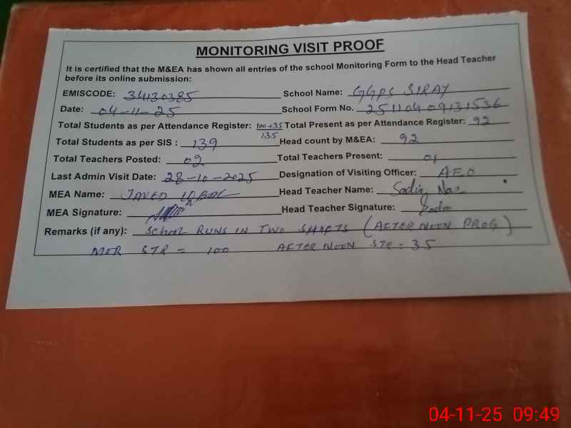 | EMIS Code: 34130385 | Name of School: GGPS SIRAY | |||