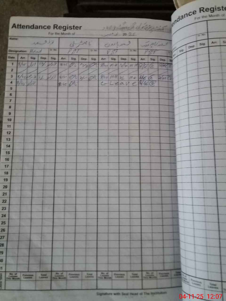 | Leave | Duty | Absent | Maternity | Medical | Ex- Pak |