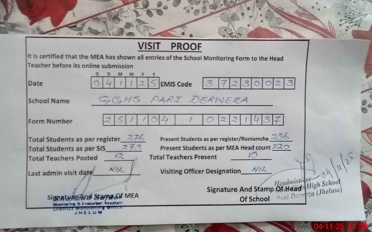 | EMIS Code: 37230023 | Name of School: GGHS PARI DERWEZA | |||