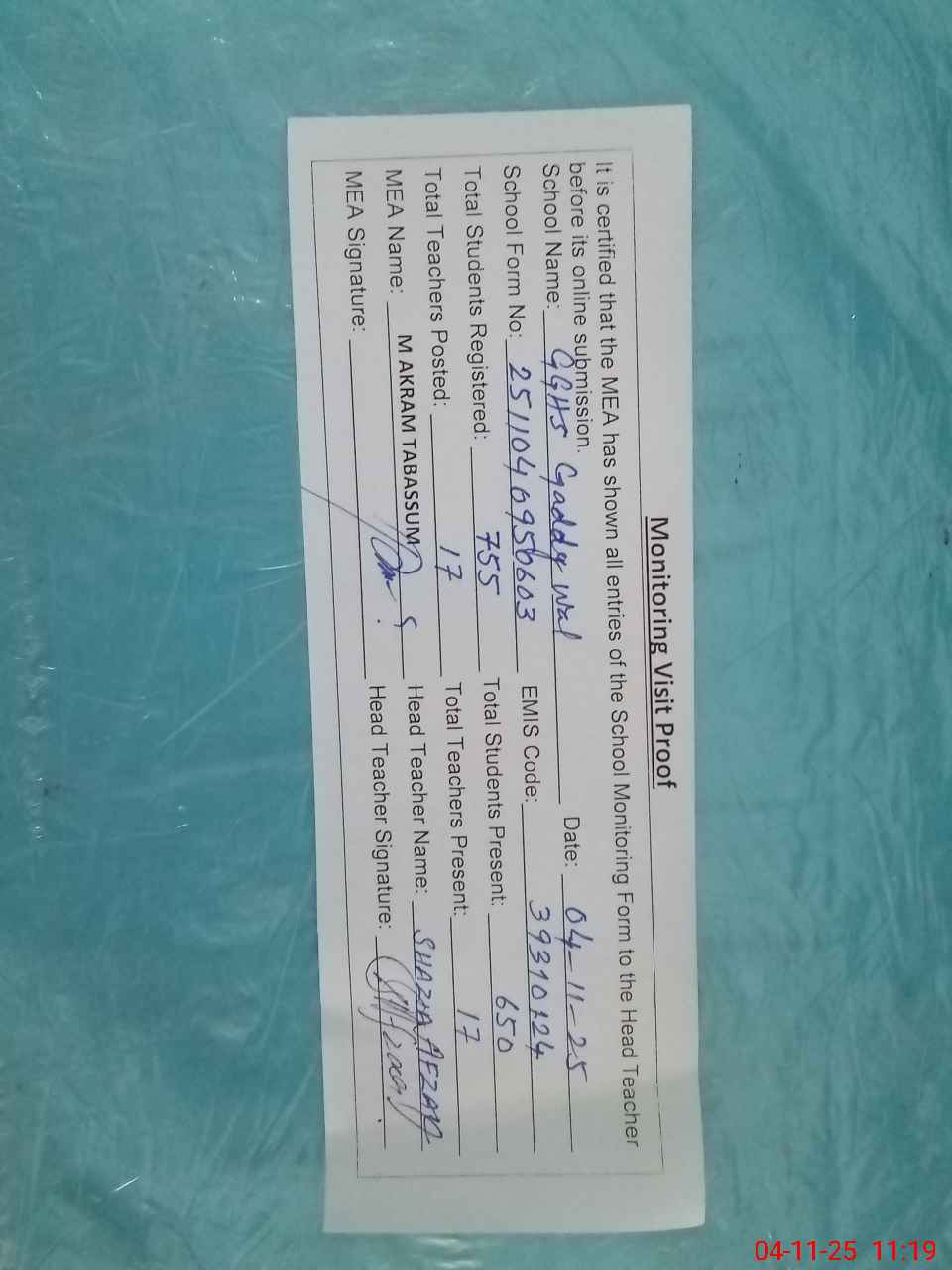 | EMIS Code: 39310124 | Name of School: GGHS GADDY WAL | |||