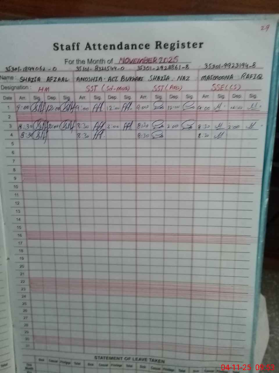 | Name: SH**** AF**** Designation: (School Headmaster's/Headmistress's) HEADMASTER Phone/Cell Number: 03**** |