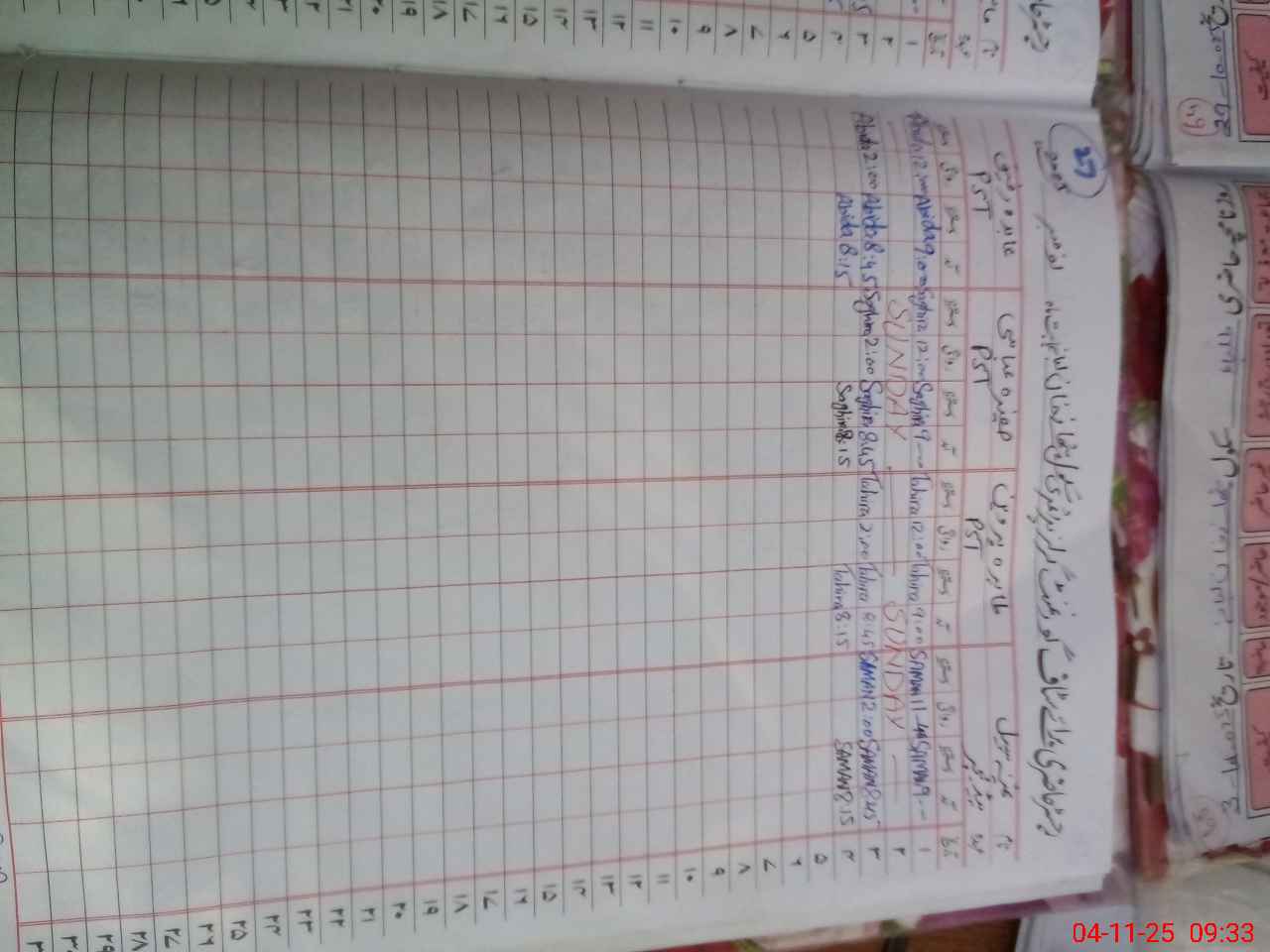 | CNIC | Full Name | Designation | R/C | Absence During Last Calender Month |