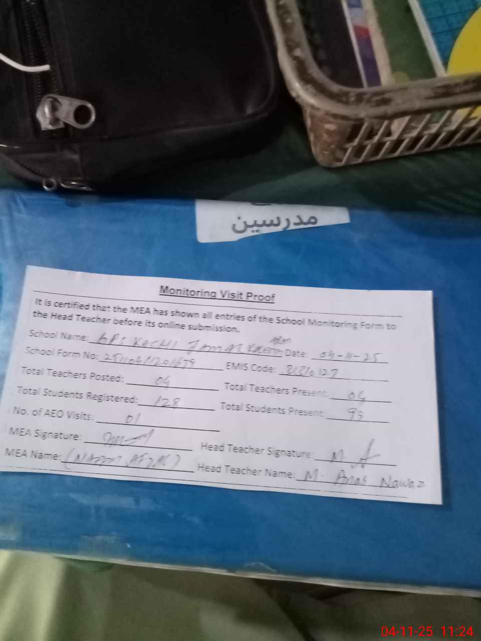 | Attendance Register | Head Teacher | MEA with School | Visit Proof |