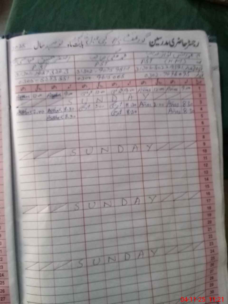 | CNIC | Full Name | Designation | R/C | Absence During Last Calender Month |