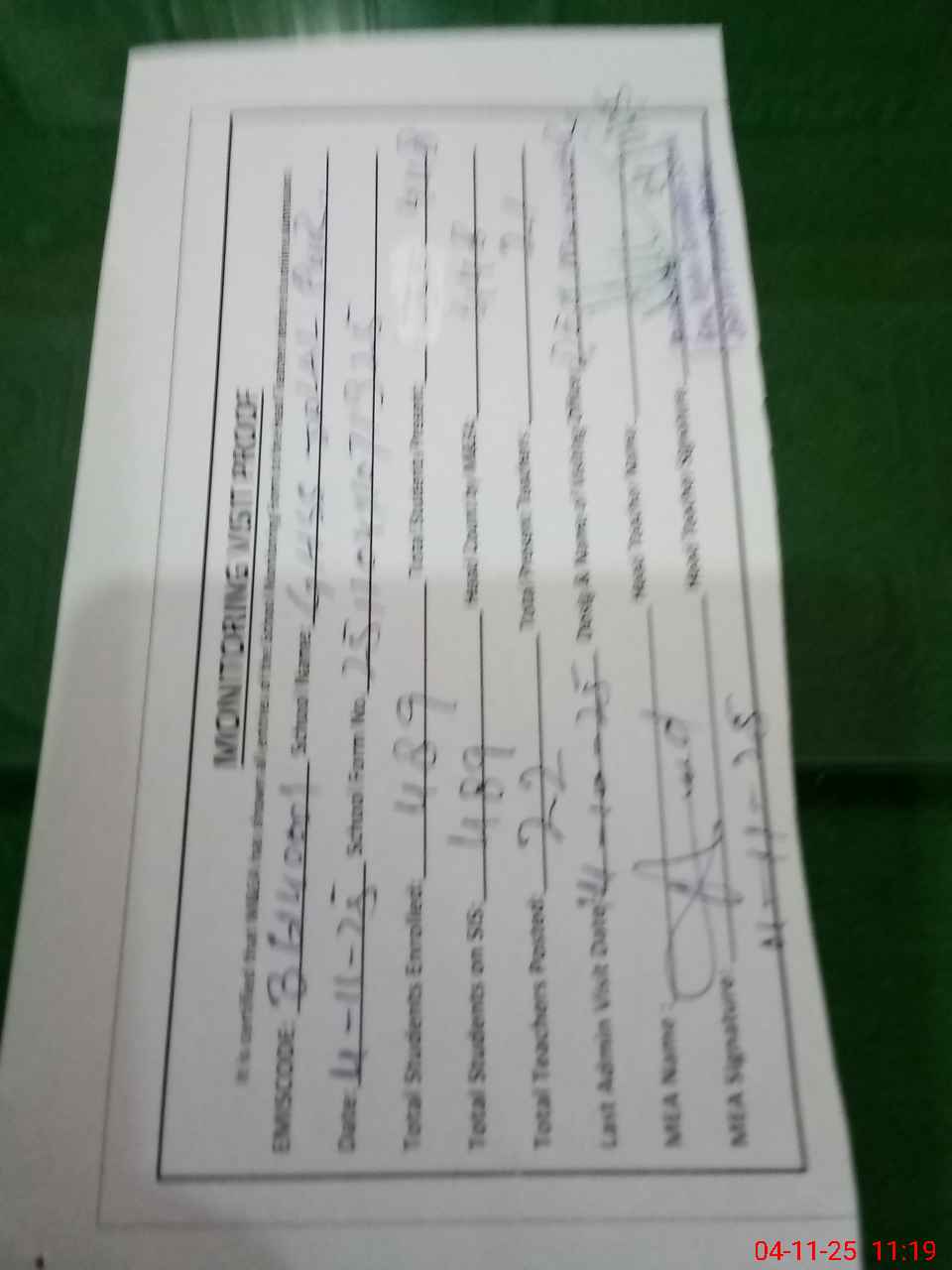 | Monitoring Date: 04-11-2025 | Start Time: 04-11-2025 10:48 AM | End Time: 04-11-2025 11:21 AM | Name of MEA: IS**** AH**** | |