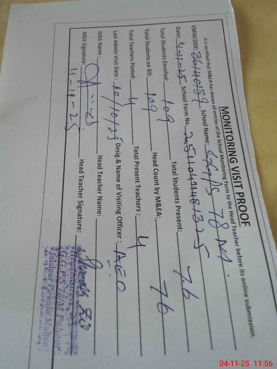 | EMIS Code: 36140139 | Name of School: GGPS 78 M BASTI PAHOR | |||