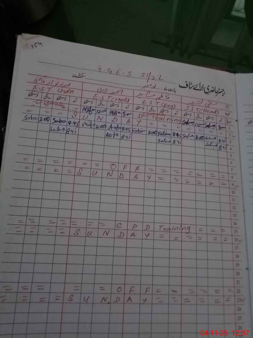 | Leave | Duty | Absent | Maternity | Medical | Ex- Pak |