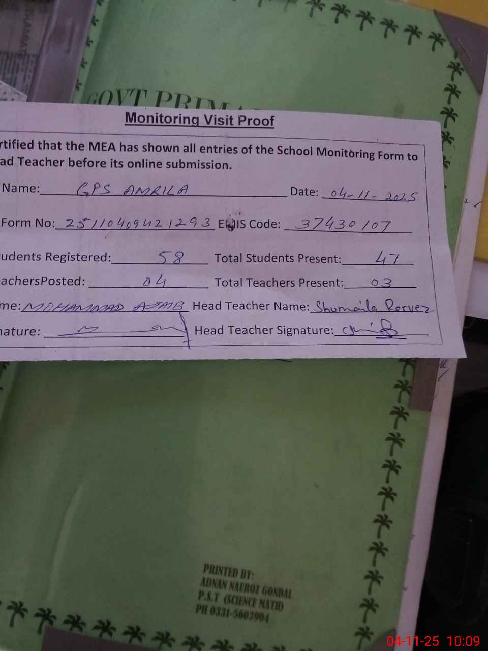 | EMIS Code: 37430107 | Name of School: GPS AMRILA NO. 2 | |||