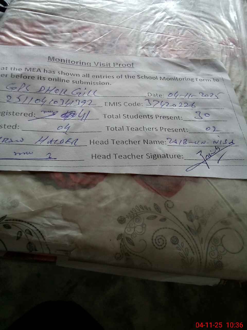 | EMIS Code: 37420226 | Name of School: GPS DHOK GILL | |||