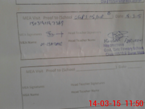 | Attendance Register | Head Teacher | MEA with School | Visit Proof |