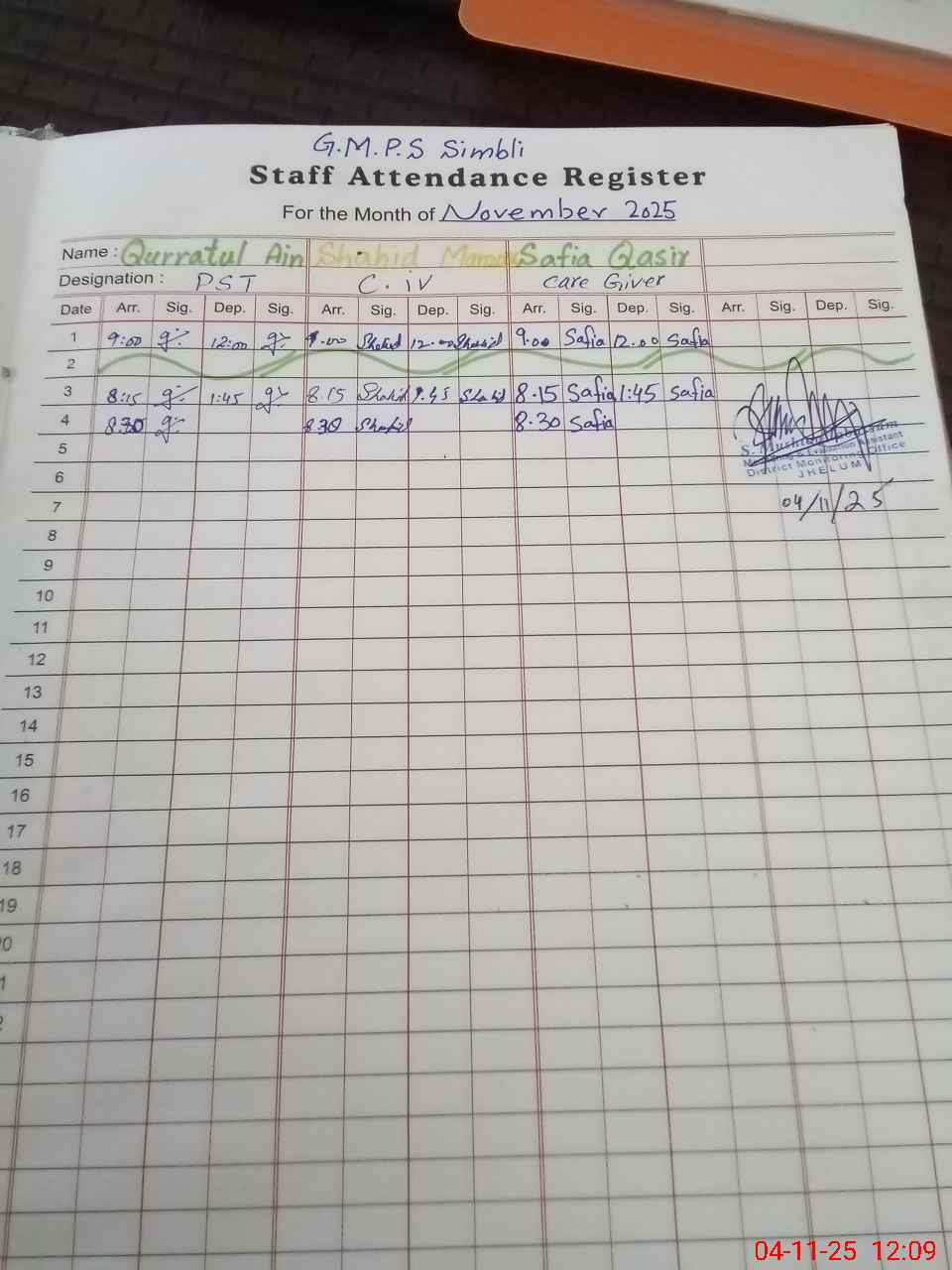 | Monitoring Date: 04-11-2025 | Start Time: 04-11-2025 11:33 AM | End Time: 04-11-2025 12:20 PM | Name of MEA: Sh**** Mu**** Ta**** | |
