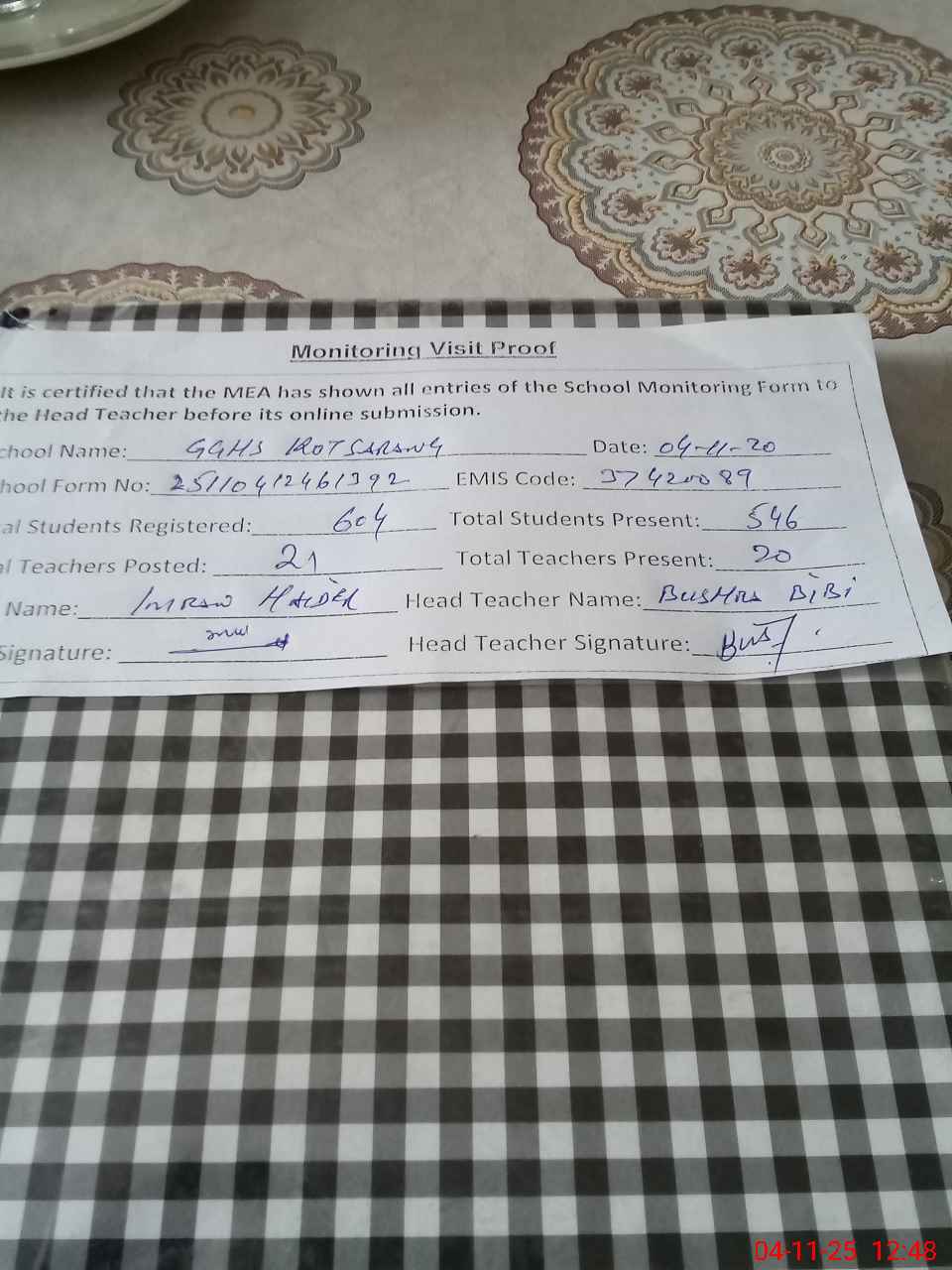 | EMIS Code: 37420089 | Name of School: GGHS KOT SARANG | |||