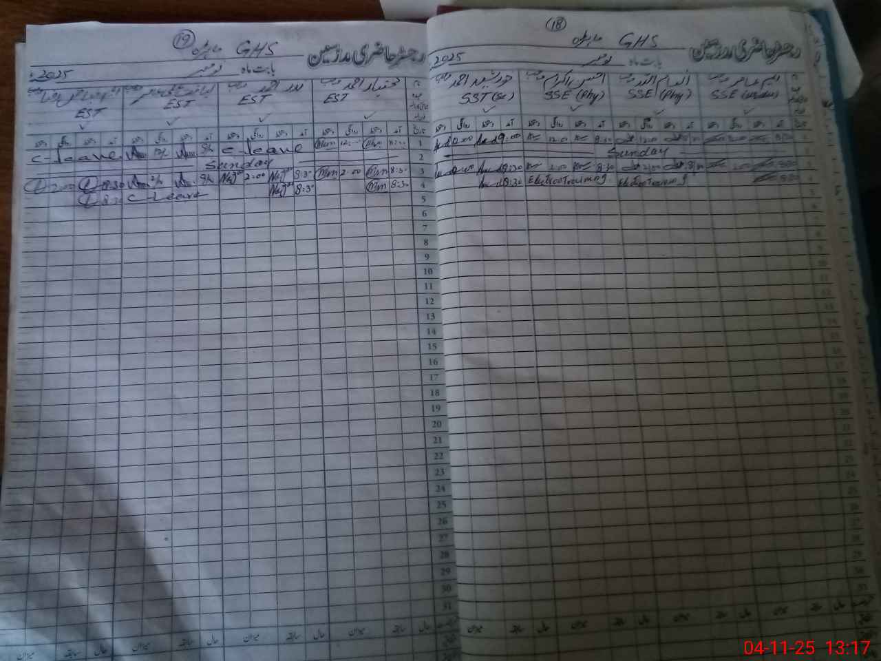 | CNIC | Full Name | Designation | R/C | Absence During Last Calender Month |