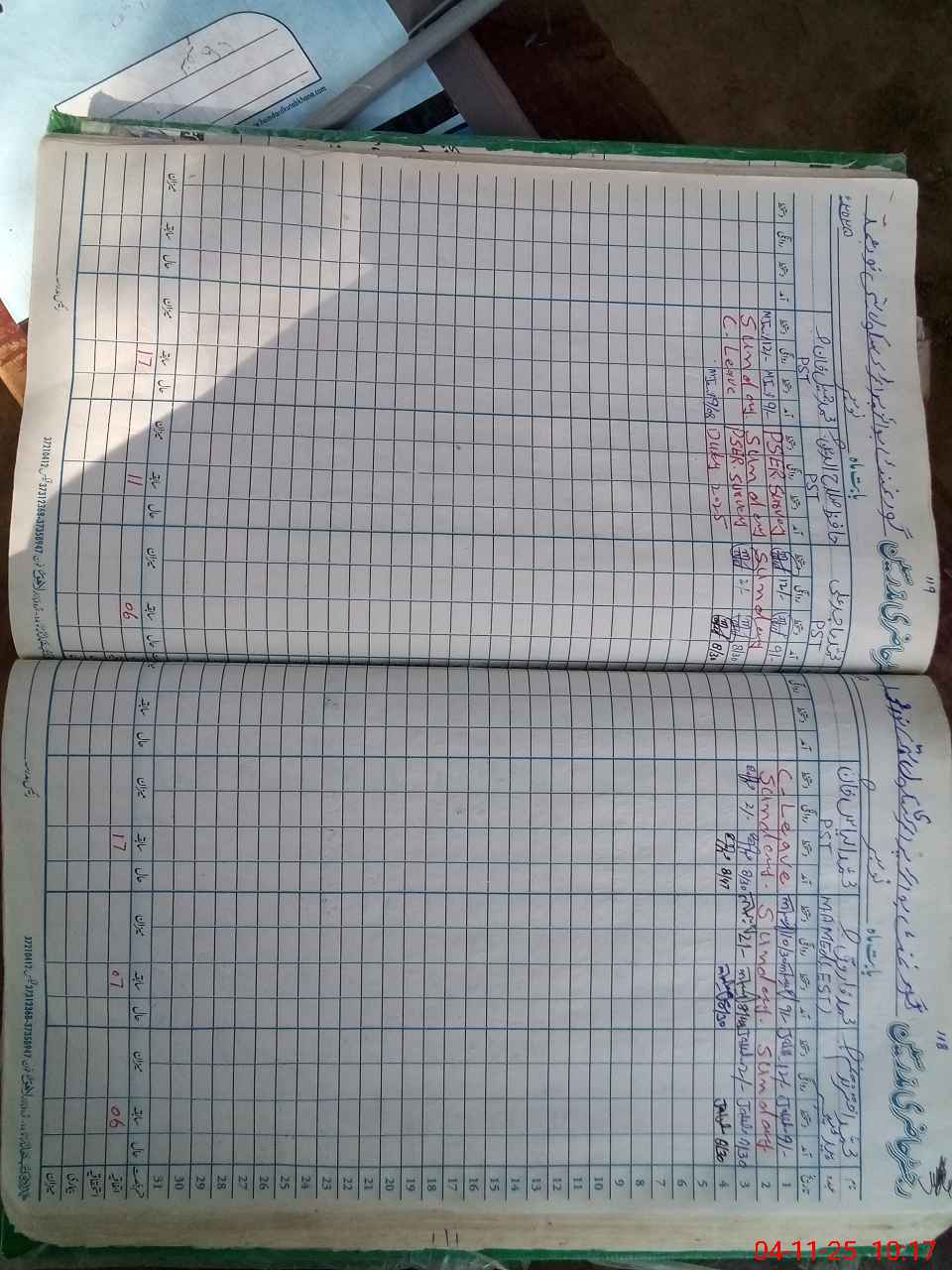 | Leave | Duty | Absent | Maternity | Medical | Ex- Pak |