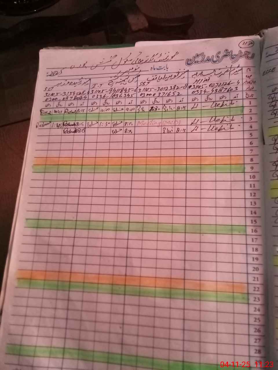| CNIC | Full Name | Designation | R/C | Absence During Last Calender Month |