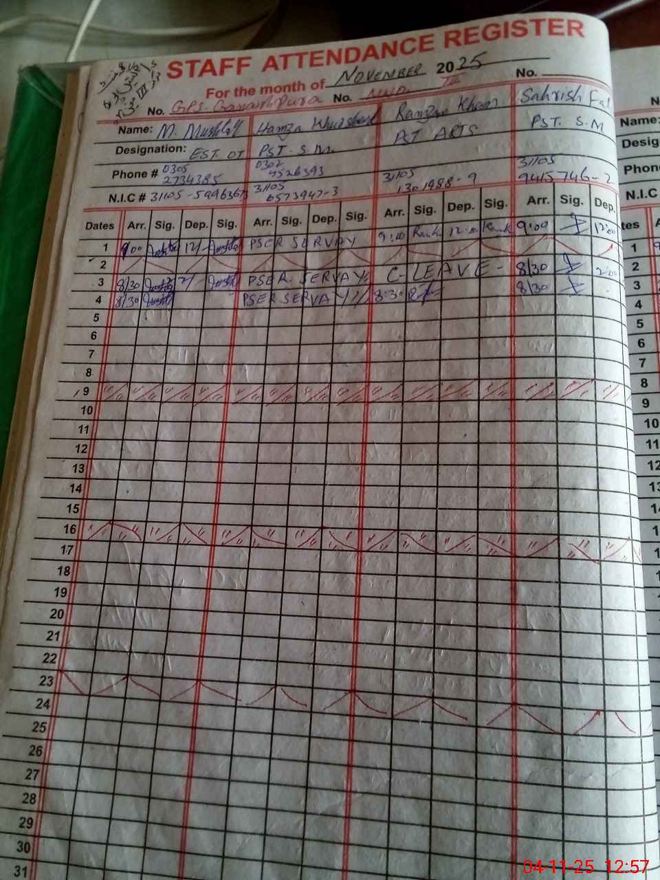 | 31**** | Ha**** Kh**** | ESE Science | Contract | 0 | 0 | 0 | 0 | 0 | 0 | 0 | 0 | 0 | Absent (Un-Authorized) |