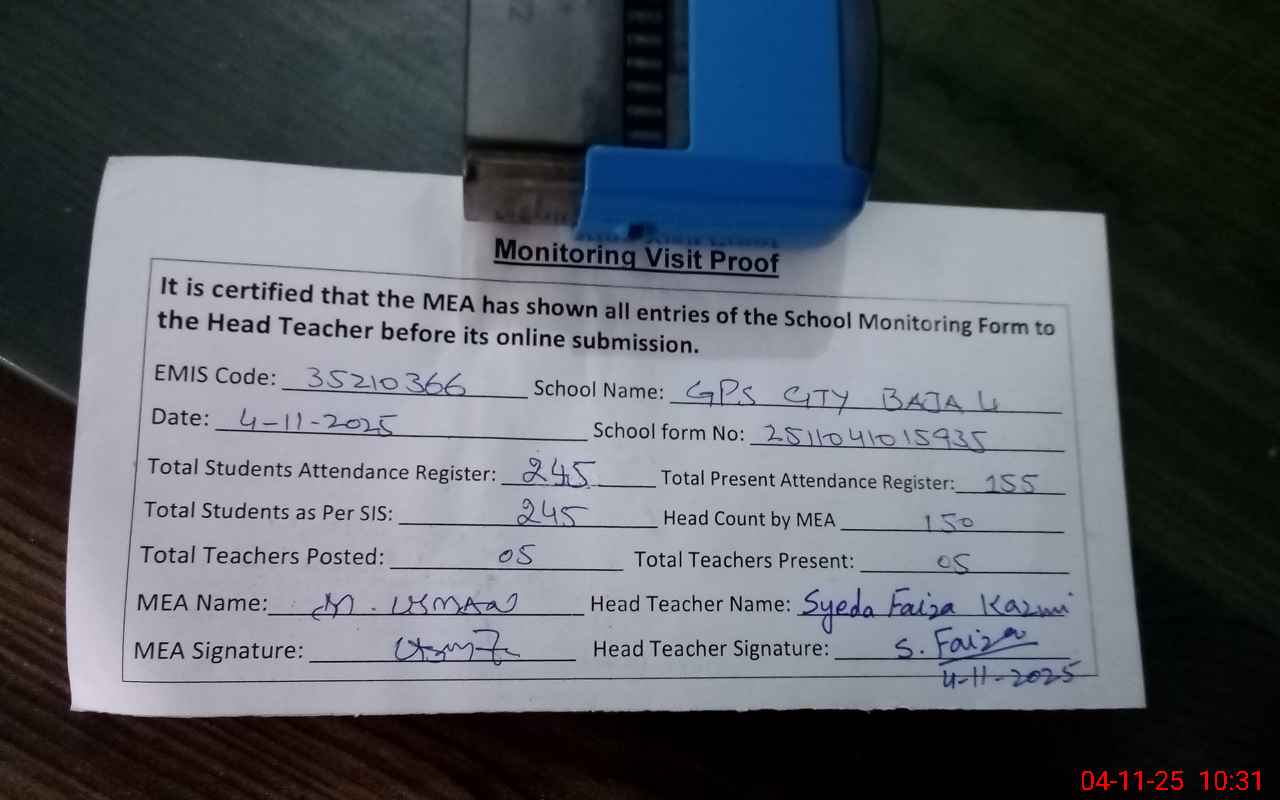 | EMIS Code: 35210366 | Name of School: GPS CITY BAJA LINE | |||