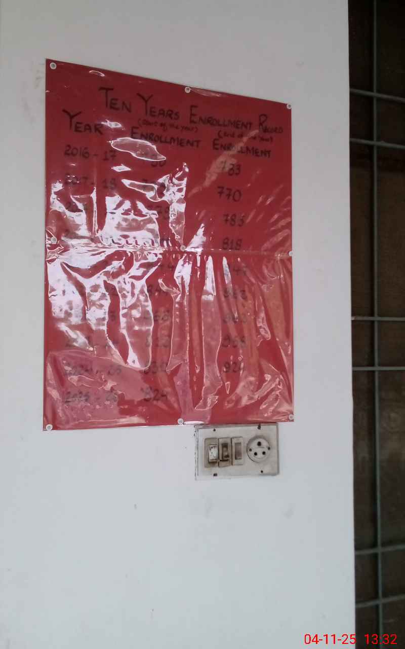 | Total no. of Classrooms: 28 No. of Classrooms Used for Teaching: 17 No. of Classrooms Storing Old Furniture, FTBs, etc: 0Comments if Any: 01 wash room is nonfunctional due to blocked White wash is required in classes and washrooms Maintenance work is required |