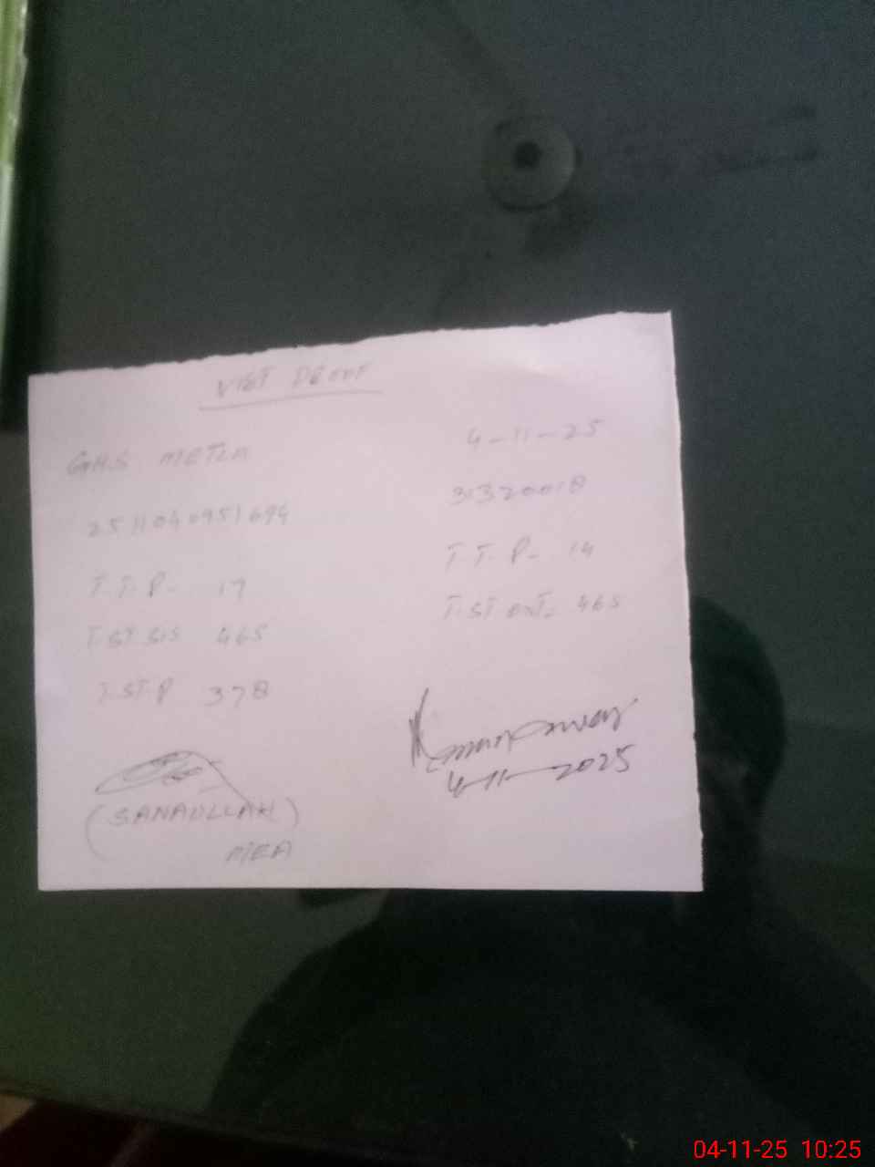 | Monitoring Date: 04-11-2025 | Start Time: 04-11-2025 09:51 AM | End Time: 04-11-2025 10:25 AM | Name of MEA: Mu**** Sa**** Ul**** Sa**** | |