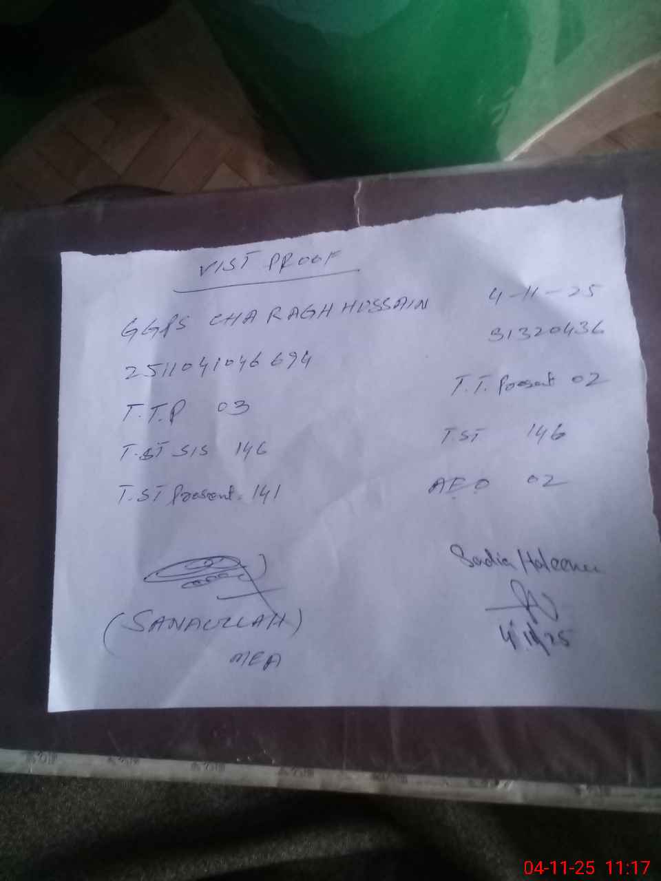 | EMIS Code: 31320436 | Name of School: GGPS CHARAGH HUSSAIN SHAH | |||