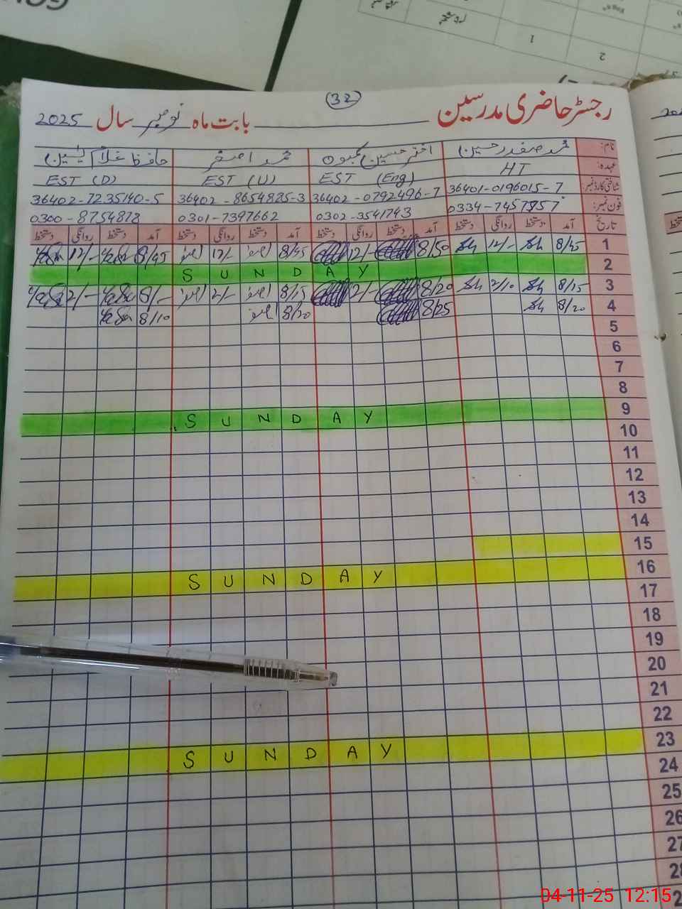 | Name: MU**** SA**** HU**** Designation: (School Headmaster's/Headmistress's) SST GENERAL Phone/Cell Number: 03**** |