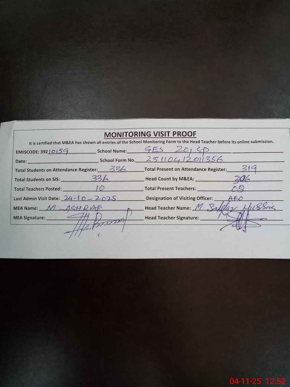 | EMIS Code: 39210159 | Name of School: GES 20/SP PAKPATTAN | |||