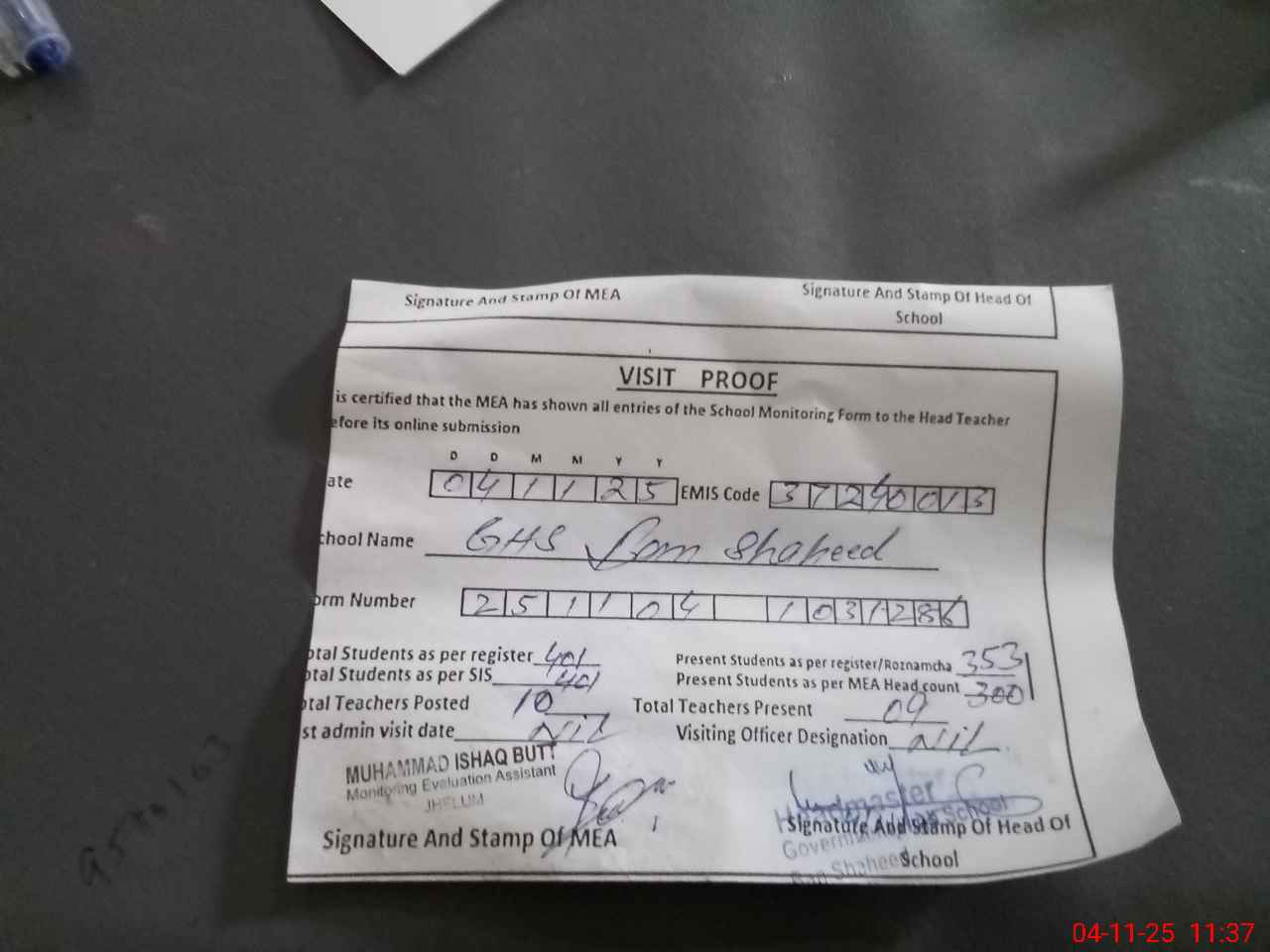 | EMIS Code: 37240013 | Name of School: GHS BAN SHAHEED | |||