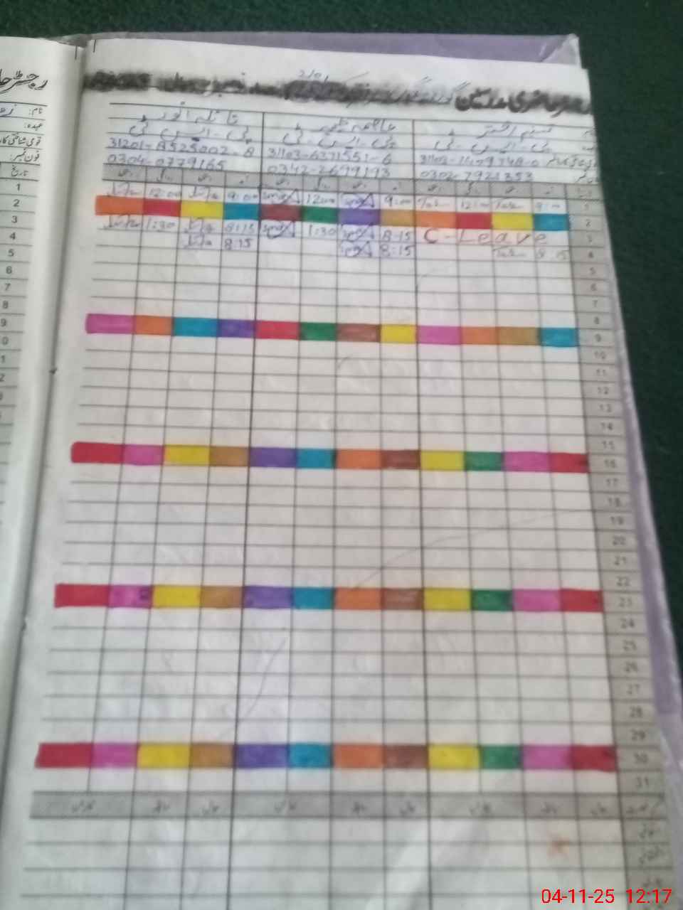 | CNIC | Full Name | Designation | R/C | Absence During Last Calender Month |