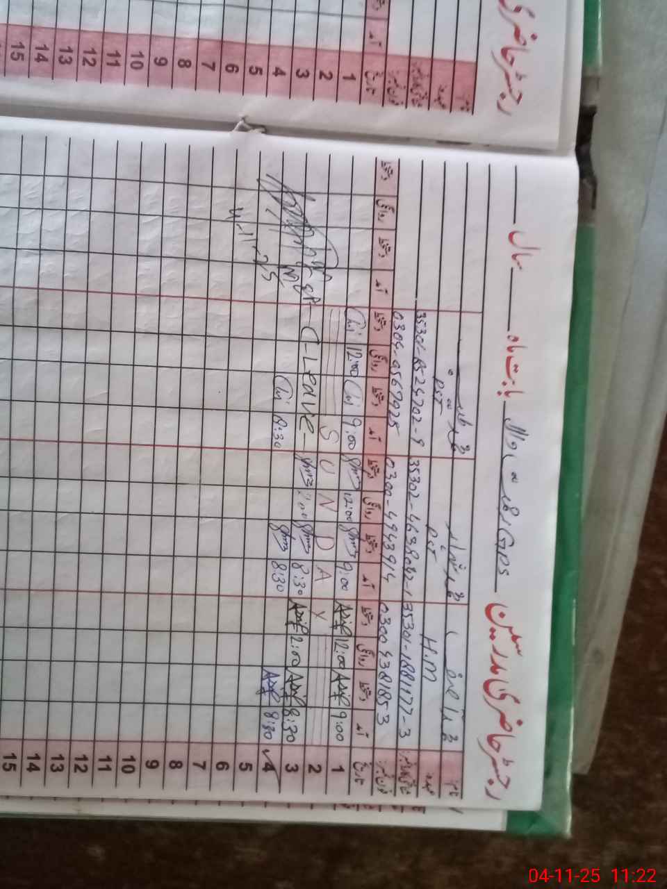 | CNIC | Full Name | Designation | R/C | Absence During Last Calender Month |