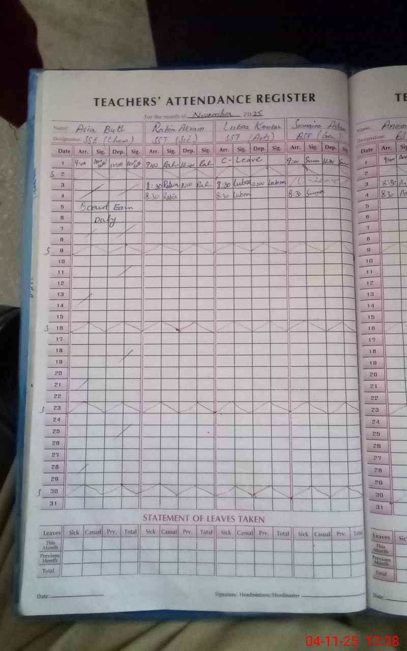 | Name: AS**** BU**** Designation: (School Headmaster's/Headmistress's) HEAD MISS Phone/Cell Number: 03**** |