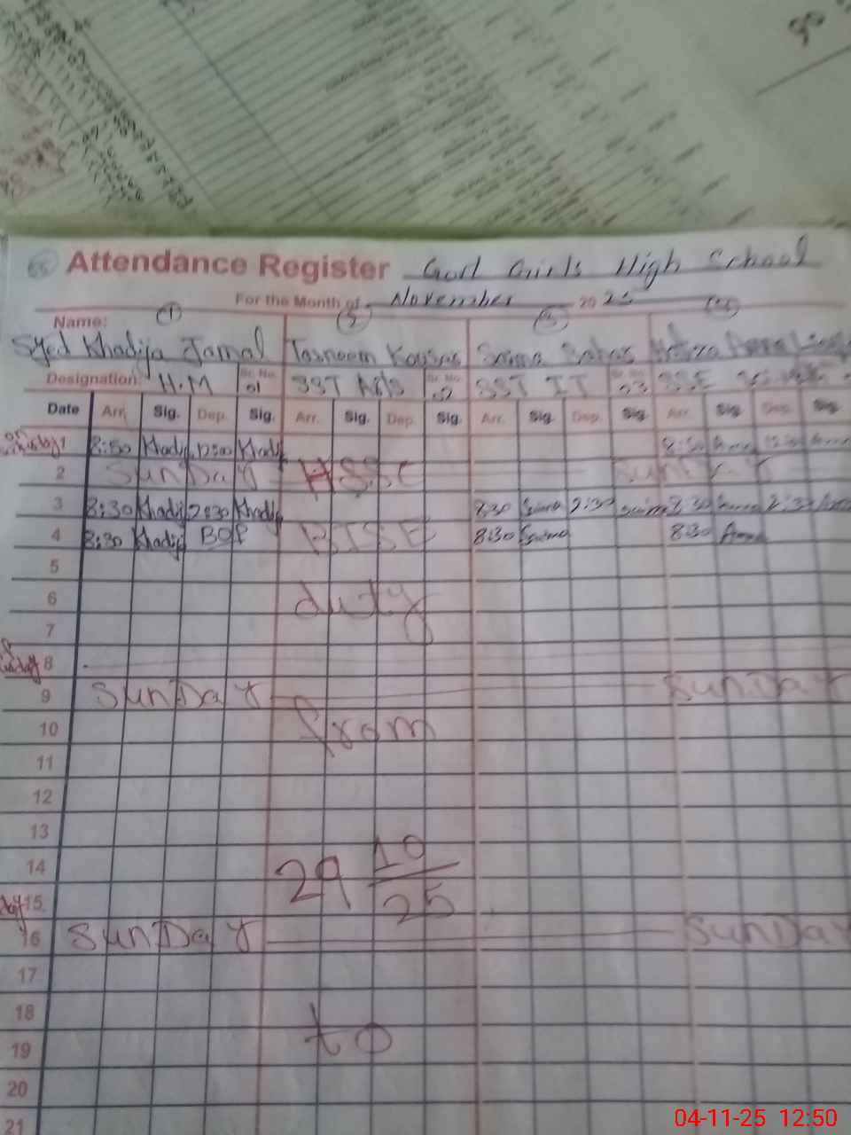 | 35**** | Sy**** Kh**** Ja**** | Contract | 2 | 0 | 0 | 0 | 0 | 0 | 0 | 0 | 2 | Absent (Un-Authorized) | |