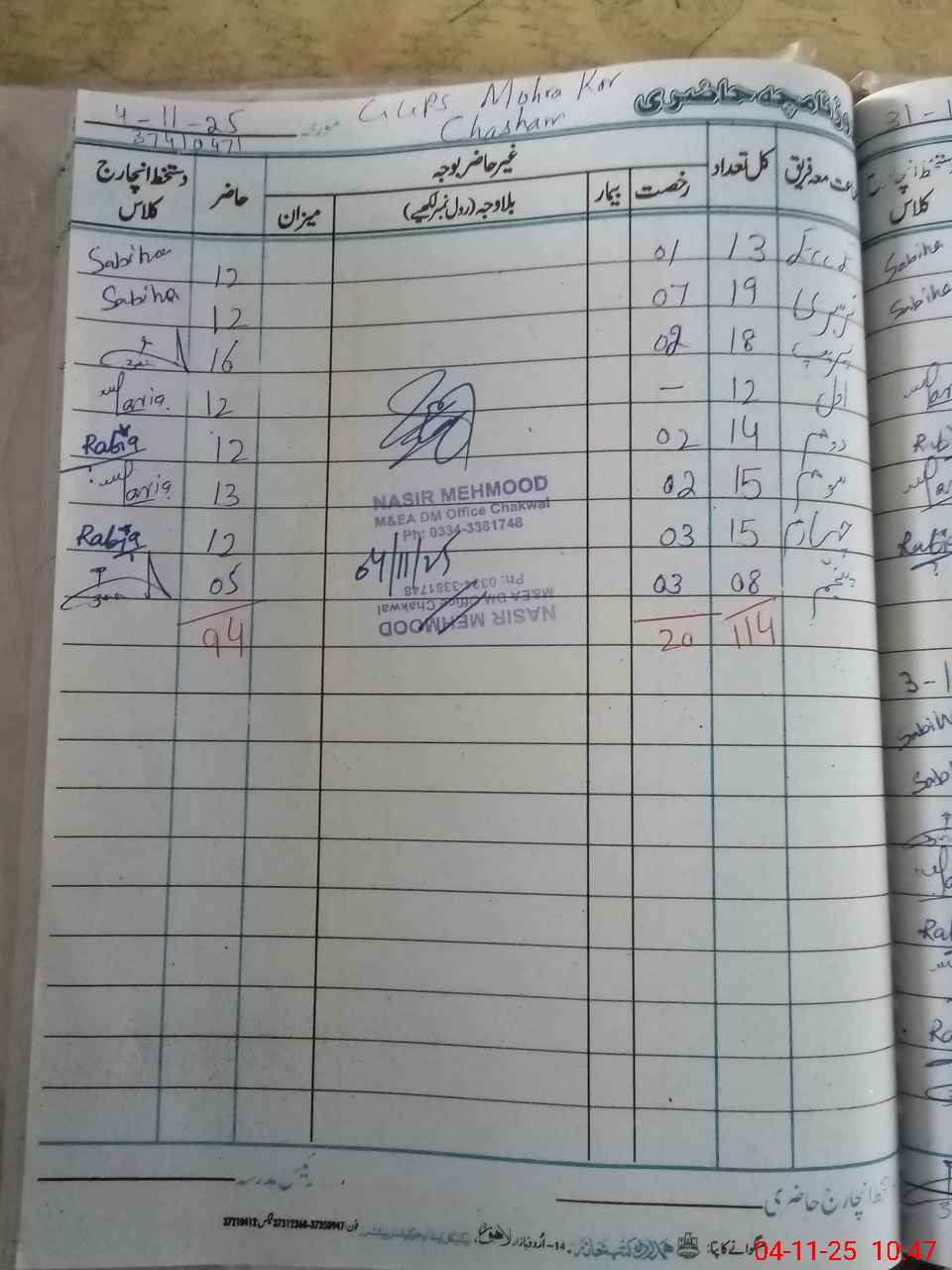 | District: CHAKWAL | Tehsil: CHAKWAL | Markaz: CHAKWAL-II-FEMALE | Level: Primary | |