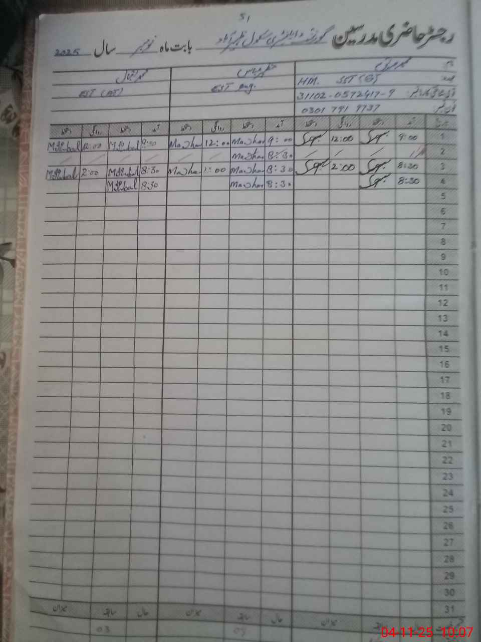 | Name: MSa**** Designation: (School Headmaster's/Headmistress's) SST Gen HM Phone/Cell Number: 03**** |