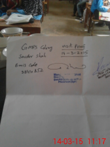 | EMIS Code: 38410852 | Name of School: GMPS COLONY SARDAR SHAH | |||