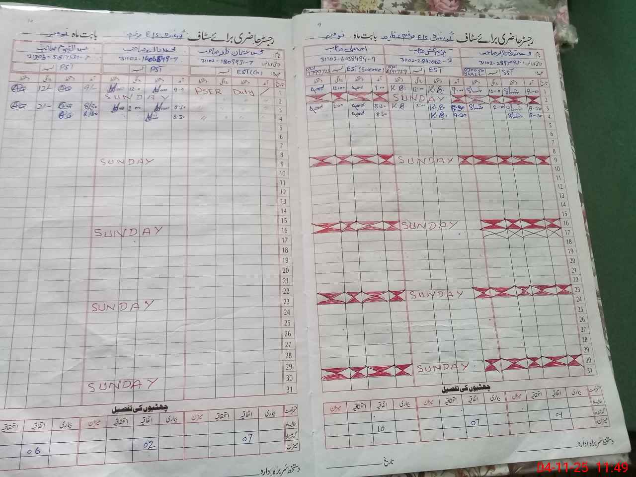 | 31**** | Mu**** Us**** Za**** | Contract | 0 | 0 | 23 | 0 | 0 | 0 | 0 | 0 | 0 | Absent (Un-Authorized) | |