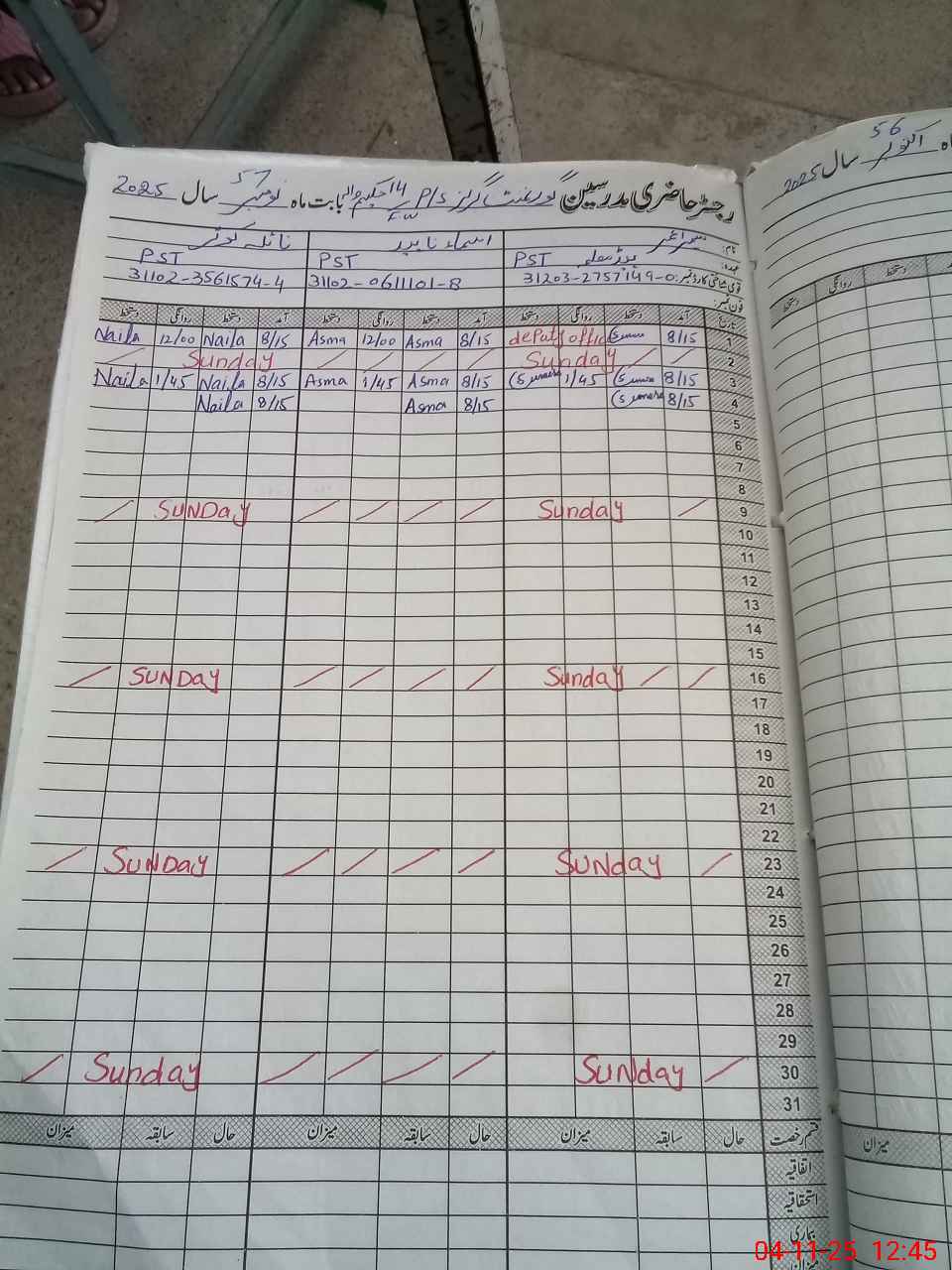 | CNIC | Full Name | Designation | R/C | Absence During Last Calender Month |